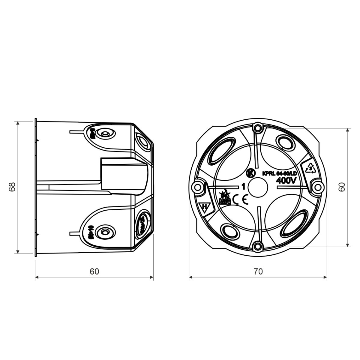 Коробка огнестойкая безгалогенная установочная KPRL 64-60/LD HF_KA для полых стен с двойным впрыском предназначена для использования в условиях с повышенной необходимостью защиты людей и имущества.