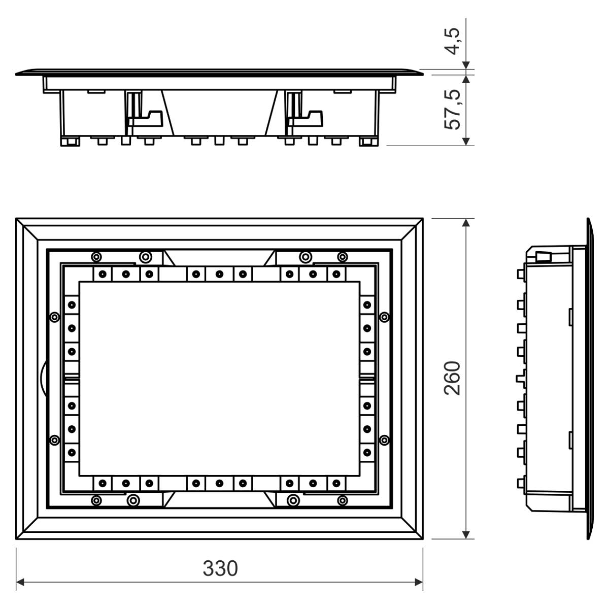 Предназначен для установки в напольную коробку KUP 80. Используется как заглушка для прокладки кабелей. После монтажа каркаса на несущий лист укладывается чистовое напольное покрытие, каркас не предназначен для установки приборов. Дополнительная установка устройств возможна только при смене коробки на KOPOBOX. После установки коробки на опорную плиту укладывается финишное напольное покрытие толщиной не более 8 мм. Отверстие, необходимое для вставки в фальшпол, составляет 218 x 288 мм.