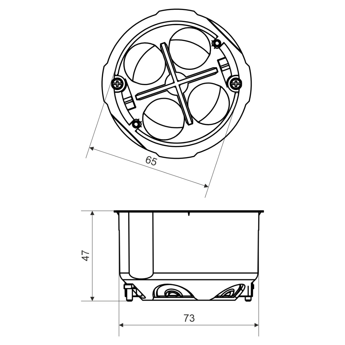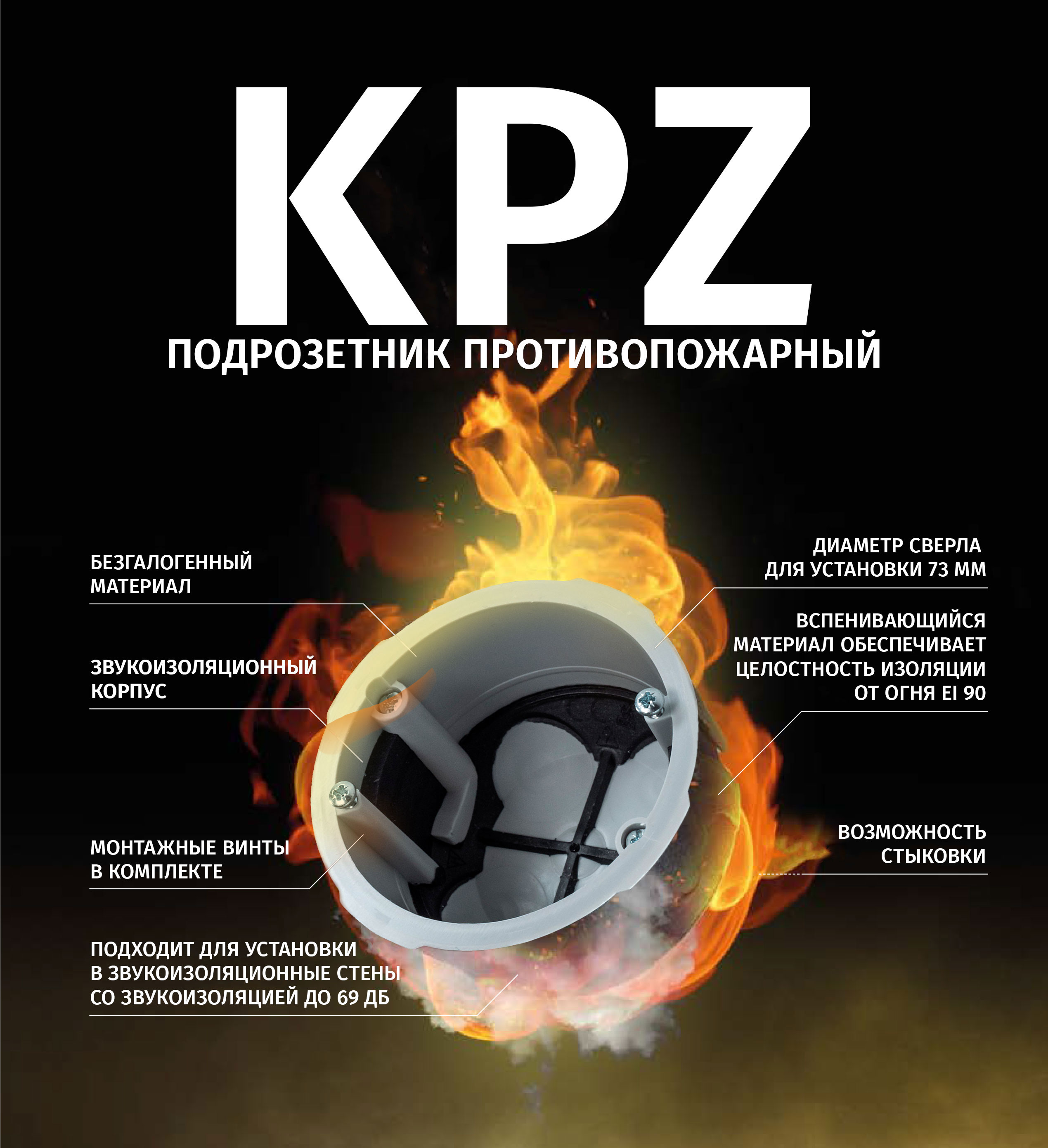 Короб электромонтажного устройства противопожарных перегородок. Подходит для установки в гипсокартонные и газобетонные конструкции. Предназначены для распределительных сетей напряжением до 400 В. Входные отверстия выполнены из гибкого материала. Герметичное проникновение обеспечивается даже при вставленном кабеле или трубе. Вспенивающийся материал снаружи и внутри коробки. В случае пожара этот материал быстро меняет свой объем (набухает) и, таким образом, герметизирует монтажное отверстие короба и препятствует прохождению огня через разделительную перегородку. Степень защиты IP30 соответствует коробкам с соответствующей крышкой или устройству со степенью защиты выше или равной IP30. Диаметр монтажного отверстия 73 мм. Крепежные винты и металлические ножки имеют трехстороннюю резьбу для быстрой установки. Подходит для зданий с повышенной защитой людей и имущества при пожаре Примечание по системам с сохранением работоспособности при пожаре: Огнестойкость и изоляция до 120 минут (EI 15 - EI 120). Огнезащитный материал укладывается внутри и снаружи короба.Классификация ПО зависит от конкретного расположения короба в гипсокартоне или газобетоне, подробно описанном в новом каталоге Системы с сохранением работоспособности при пожаре.