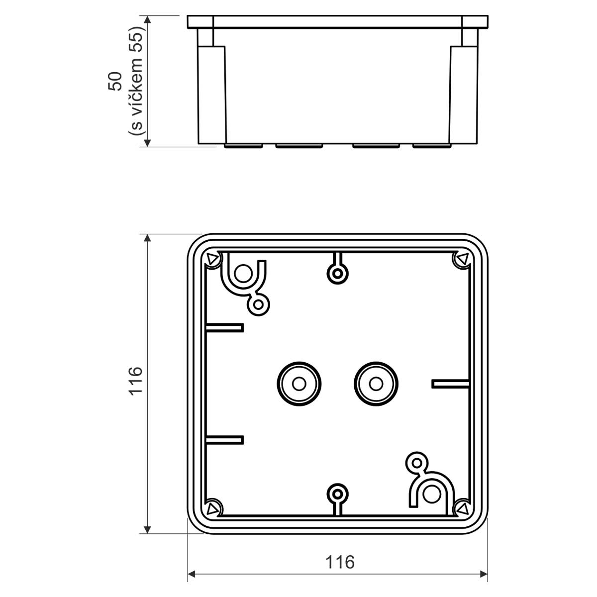 Для установки в среде с повышенной влажностью, пыле-, химической и коррозионной стойкостью, в среде с повышенным риском механических повреждений. Закрытый бокс без входов. Для установки на материалы класса огнестойкости E или F используйте теплоизоляционный мат.