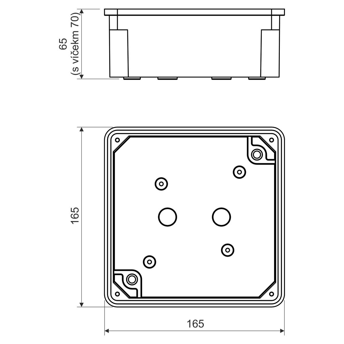 Для установки в среде с повышенной влажностью, пыле-, химической и коррозионной стойкостью, в среде с повышенным риском механических повреждений. Закрытый бокс без входов. Для установки на материалы класса огнестойкости E или F используйте теплоизоляционный мат.