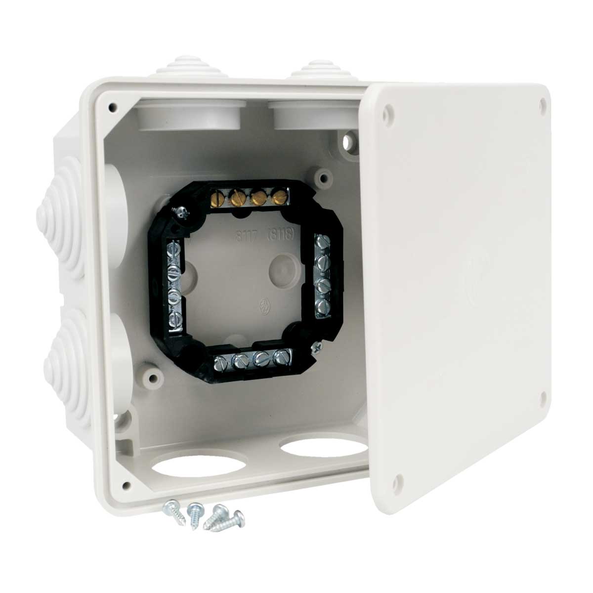 Для установки в среде с повышенной влажностью, пыле-, химической и коррозионной стойкостью, в среде с повышенным риском механических повреждений. Универсальные втулки для кабелей и труб, втулки и клеммные колодки можно заказать отдельно. Для установки на материалы класса огнестойкости E или F используйте теплоизоляционный мат.