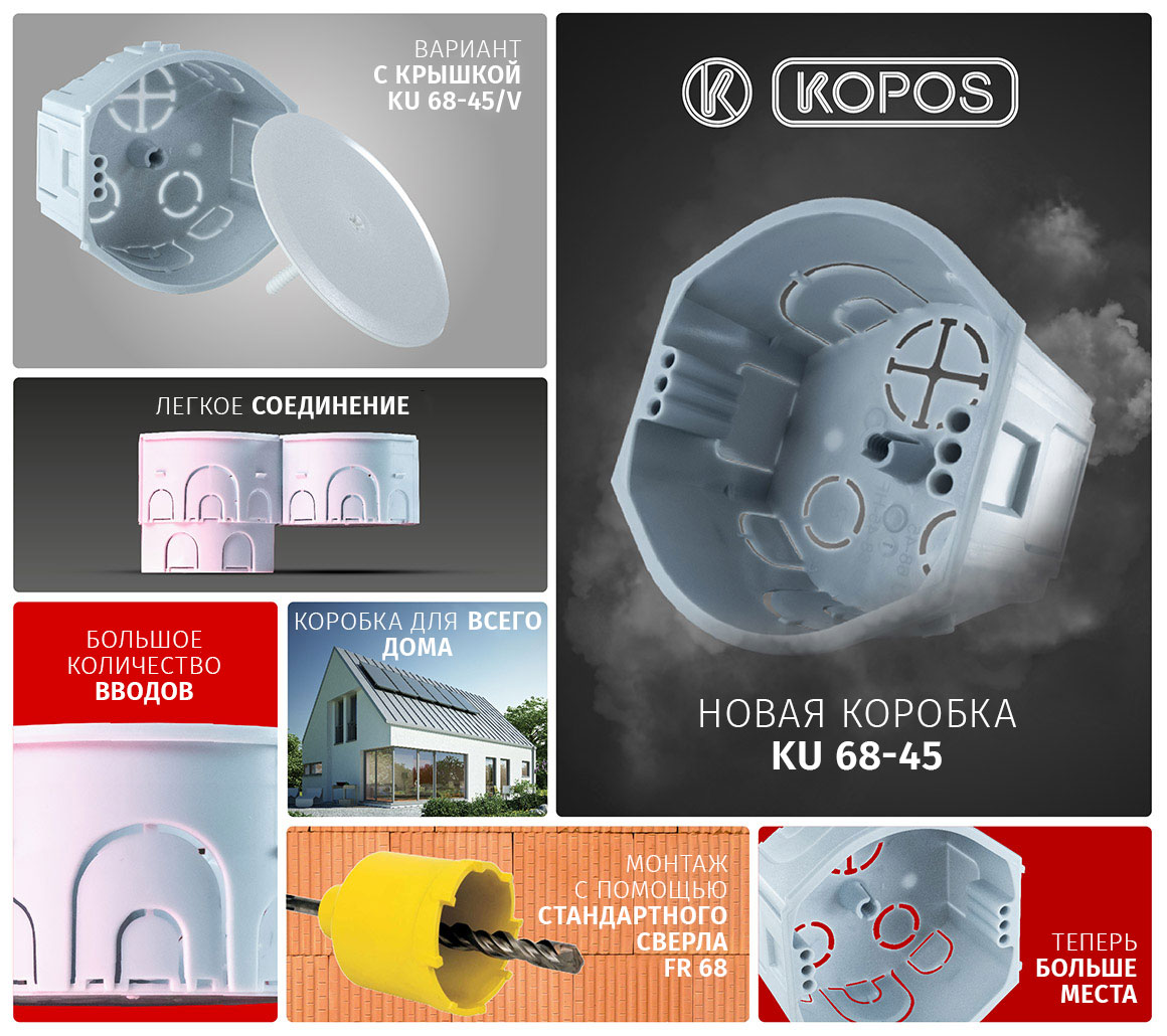 Например, новая коробка KU 68-45_KA в твердые стены, в конструкцию которой внесен ряд усовершенствований.